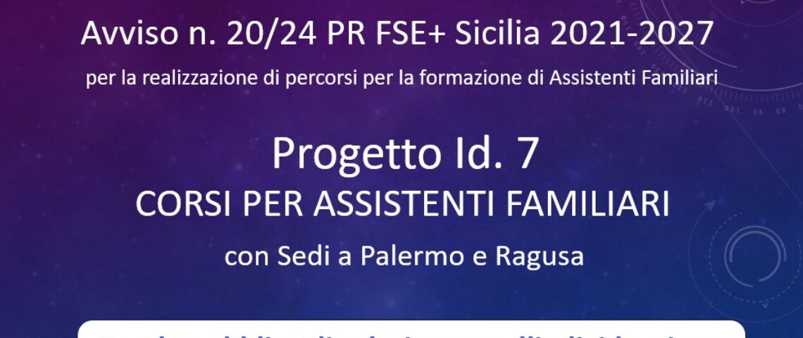 AVVISO 20/2024 – RECLUTAMENTO ALLIEVI PER CORSO DI FORMAZIONE PER ASSISTENTI FAMILIARI DI PALERMO E RAGUSA