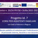 AVVISO 20/2024 – RECLUTAMENTO ALLIEVI PER CORSO DI FORMAZIONE PER ASSISTENTI FAMILIARI DI PALERMO E RAGUSA 01/19/2026 AVVISO N.20/2024PR FSE+2021-2027 PER LA REALIZZAZIONE DI PERCORSI PER LA FORMAZIONE DI ASSISTENTI FAMILIARI DDGN 2783 DEL