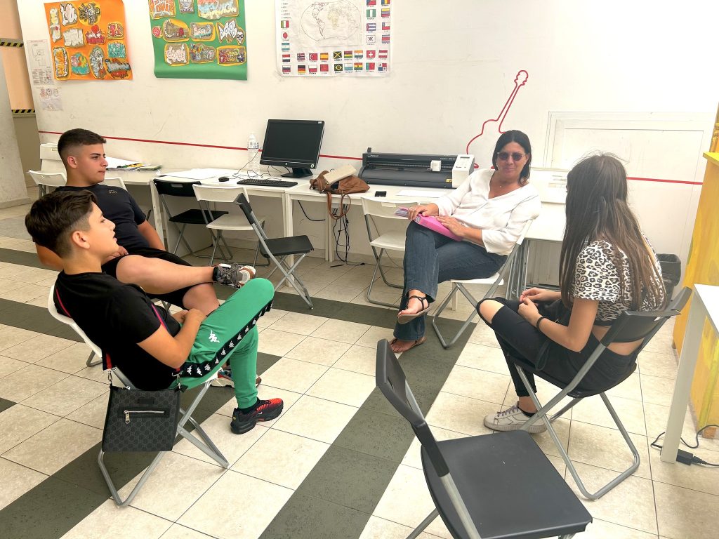 Questo forte legame con il territorio ha reso l’associazione il partner ideale per attuare il progetto a San Filippo Neri. Qui, un’equipe multidisciplinare di professionisti realizza interventi socio-educativi rivolti ai minori tra i 14 e i 17 anni in situazione di vulnerabilità e di forte disagio multifattoriale, spesso fuori o ai margini del circuito scolastico formativo. Il servizio opera in raccordo con le agenzie educative, i servizi sociali e le famiglie. L’attività viene svolta in spazi informali, individualmente o per piccoli gruppi, e per ciascun ragazzo viene previsto un progetto e un patto educativo che coinvolge l’intera rete di supporto.